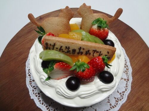 いつも、さっぱりしたデコレーションしかしない私ですが… soraさんみたいに、かわいいデコレーションもいいなと思って、作ってみました 夫の弟は、大の甘い物好き 昨日がバースデーです。 5○才ですが、喜んでくれました 彼は、2匹のニャン子、チャチャと…