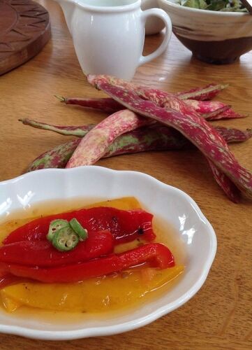 今日は、お菓子教室の時にTさんが披露してくださったお料理を紹介いたしますね 写真のお料理、美しいですね~ パプリカの焼き浸しです。 パプリカの甘みと食感を楽しむ、夏にぴったりのさっぱりしたお味… 美味です… ~パプリカの焼き浸し~ <材料> 赤パプ…