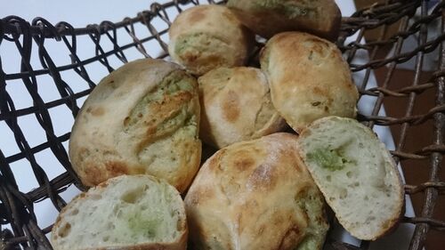 暑くなってくると、夏向きなパンを… 天然酵母パン教室応用科、今日のレッスンは、 バジルのパンとフーガスです。 写真はバジルのパンです。 胡桃でコクを出しているので、茶色い色になっていますが、 バジルたっぷり、オリーブオイルや岩塩、にんにくで、夏…