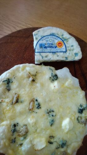 先日買ってきた、ノスタルジー・フルム・ダンベール フランス、オーヴェルニュのブルーチーズだそうです。 を、ランチのピザにのせてみました~ 他にも、いいチーズがあったら良かったんですが、 クリームチーズととりあえずのナチュラルチーズものせて。。…