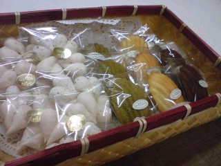2008-01-20 お友達へ☆ハートのメレンゲクッキーとマドレーヌのプレゼントボックス ☆ プレゼント #食べ物 昨日と一昨日で作った、ハートのチョコメレンゲクッキーと、プレーン、ココアと抹茶のマドレーヌをラッピングして、プレゼントボックスにしました。 いつも、できたお菓子を、ラッピングしておしゃれさせると、うきうきします。今回も、楽しかった~♪ 大事な友人に喜んでもらえますように…*