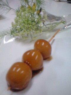 2010-10-30 夫の復習~みたらし団子♪ 夫の和菓子作り #食べ物 夫が通った製菓製パン職業訓練校では、本格的なみたらし団子を勉強したらしいんですが… 今回、夫が作ってくれたのは、上新粉と白玉粉を使ったお手軽団子 でも、とっても美味しいです さあ、天然酵母パン教室の11月お菓子にするぞ~と、夫は張り切っています どうやら、出来立てのみたらし団子をお出しするらしいですよ 皆さん、お楽しみに