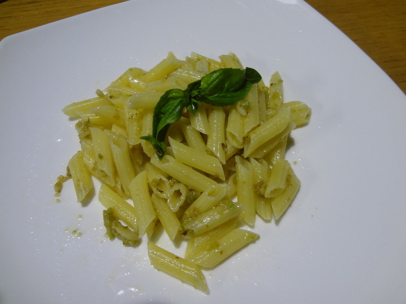 ペンネに和えて、バジルをのせて…